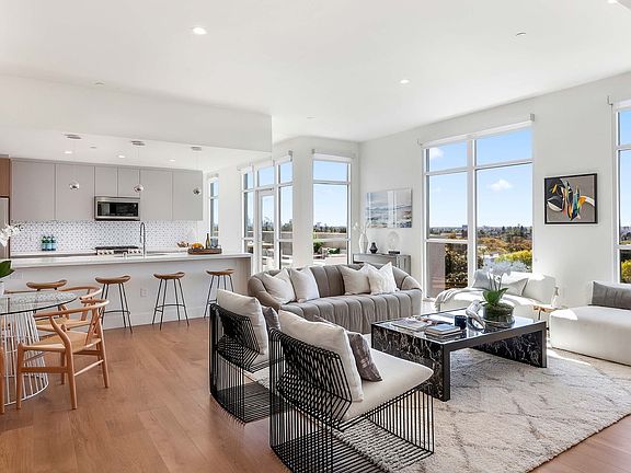 Oversized islandBuilt-in wine fridgeSmart keyless entryMarbled quartz countertopsNest thermostatFloor-to-ceiling windowsSamsung appliances