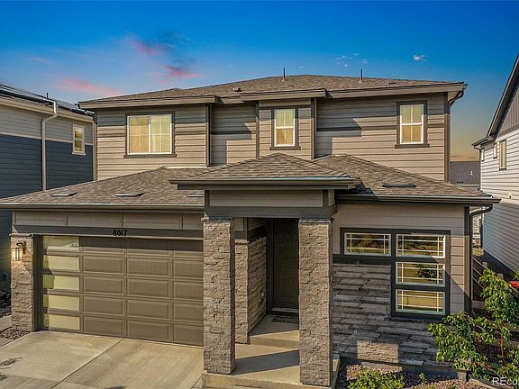 Better than a new build, this pristine south-facing Sterling Ranch home offers fantastic outdoor living capability and a finished basement! Striking curb appeal, a charming front porch, and an inviting foyer provide a warm welcome. Designed with entertaining in mind, the sweeping open concept main floor is accented by tall ceilings, abundant natural light, neutral paint, and sleek black hardware. The home chef with delight in the gorgeous kitchen that is equipped with lovely quartz countertops, an oversized island with seating, a stylish tile backsplash, a pantry, and stainless steel appliances. A sliding glass door transports you to the backyard oasis that is framed by mountain views. The space has been recently re-imagined and includes a spacious covered patio ideal for outdoor dining, a new cedar fence, an additional patio, concrete pathways, professional landscaping, and a full irrigation system with sprinklers and drip irrigation to each plant. Back inside, the main floor is completed by a powder room and a dedicated office with French doors. Take the open staircase to the upper level that hosts the primary suite, 2 sunny secondary bedrooms, a convenient laundry room, and a full bathroom with double sinks. The primary suite is privately situated on its own wing and delights with a walk-in closet and an en-suite bathroom with double sinks. Excellent additional living space is provided by the finished basement that offers a large rec room, a conforming bedroom, and another bathroom. Wonderful location in a welcoming community with year-round activities, parks, trails, a community center (with daily food trucks!), an outdoor pool, and a fitness center. Outdoor enthusiasts rejoice, the home comes with an included annual state parks pass and is moments from both Chatfield and Roxborough State Parks.