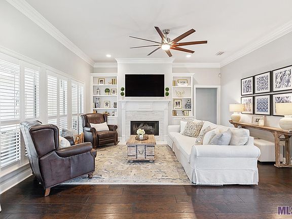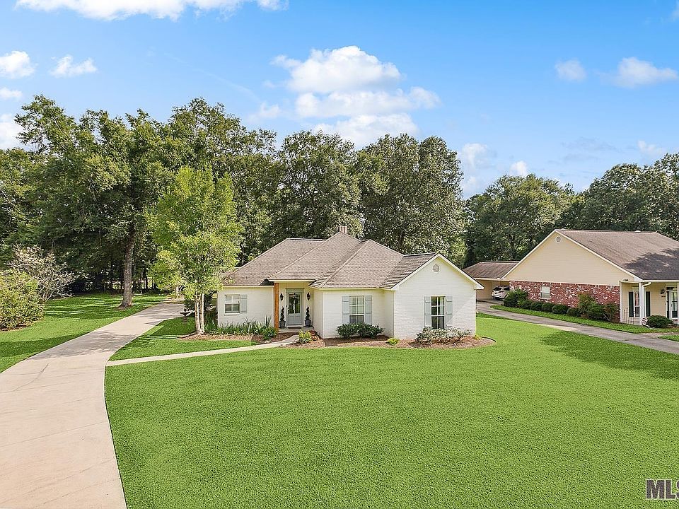 This stunning 4-bedroom, 2-bath home is nestled in the highly sought-after Hunstock Hills Subdivision in Watson. Situated on a generous 0.55-acre lot, this charming residence offers the perfect blend of elegance and comfort. Upon entering, you'll be immediately captivated by the abundance of natural light flooding the spacious living area. The 12' ceilings enhance the sense of openness, while recessed lighting adds a touch of modern sophistication. The living room boasts custom built-ins, a cozy wood-burning fireplace, and beautiful wood flooring. The meticulously designed kitchen offers custom white cabinetry with generous storage space, granite countertops, top-of-the-line stainless steel appliances, plantation shutters, and a convenient breakfast bar complete the inviting atmosphere. The master bath is a sanctuary of relaxation, featuring double vanities, a large custom tile shower adorned with a glass door, a generously sized soaking tub, and spacious walk-in closets that provide ample storage for all your wardrobe needs. Step outside to your private oasis with a covered patio and enjoy a refreshing dip in the inviting in-ground swimming pool. The wood-fenced backyard is surrounded by mature shade trees for both privacy and a sense of harmony. This home gives you a classic southern charm feeling that you are going to love!