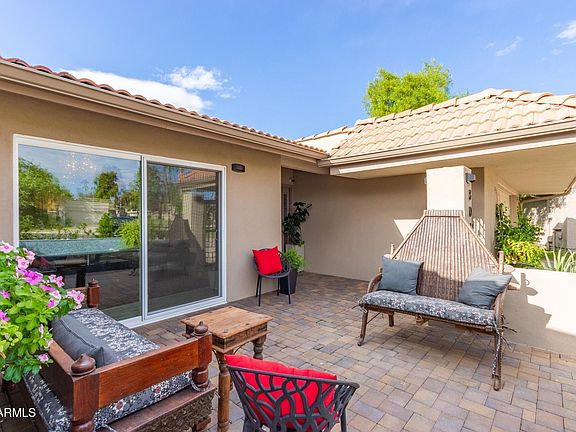 This move-in-ready, Lovely, fully remodeled, 3BD/2BA home located in Highly desirable Heritage Village II in McCormick Ranch. A unique home, designed with a beautiful entertainment kitchen, w/custom pantry, great room, gorgeous courtyard, water feature & private back patio. One of the bedrooms is custom-designed for a home office. All bedrooms have sliding door access to the back patio. Includes 2-car garage w/epoxy floors & storage. A network cabinet & wired ethernet to all rooms. ADT security system! With an extensive upgrade list this home is a must-see. This sought-after, lock-n-leave neighborhood is close to McCormick Ranch golf course, top dining & shopping. Freeway access is just minutes away. Community amenities include a Heated Pool & Spa, Trails, Tennis/Pickle ball Courts.