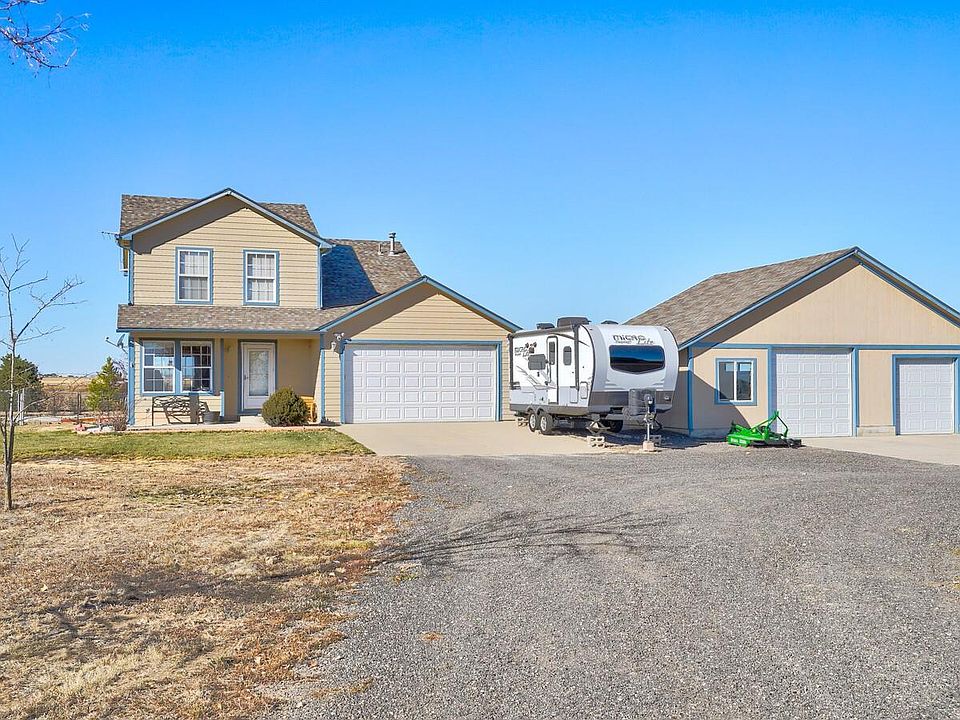 Welcome to your very own slice of paradise! This beautiful home sits on 2.29 acres shaped like a piece of pie with no HOA. This two story, 3 bedroom 3 bath home has so much to offer you. There is a potential 4th bedroom or office space in the partial finished basement, tons of natural light. Kitchen features built-in desk, all appliances and a sliding glass door that leads out to the patio facing Southwest. Perfect for barbeques or just sitting back and enjoying the sunset. There is also an attached 2 car garage, detached oversized 2 car garage and a storage shed on the West side of the property. Propane tank is leased through Agfinity. You are right next to I-76, minutes from Brighton and about 35 minutes from DIA. Come take a look!!