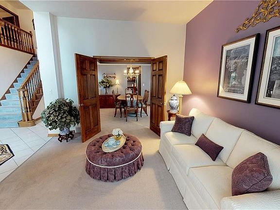 FEEL LIKE YOU ARE ACTUALLY INSIDE THIS HOME! WALKTHROUGH THE 3D VIRTUAL TOUR OF THIS PROPERTY BY CLICKING THE LINK! Welcome home to this spacious custom-built one owner Colonial in desired Huntington Woods development. This home is nestled on a beautifully landscaped lot on quiet culdesac with views of Mill Creek Park from the back Trex deck. The main floor features flex room, formal living and dining rooms, laundry room, and family room with fireplace that is open to the expansive kitchen hosting large island with seating, desk area, stainless steel appliances, and exceptional cabinetry. The upstairs hosts a large master bedroom with glamour bath, dual vanity, and walk-in closet which has access to unfinished bonus room. Also upstairs are 2 more generously sized bedrooms, a catwalk hallway leading to loft area with cathedral ceilings and full bath. If needed, the loft could be converted back to a 4th bedroom. The basement can be finished to suit all of your hobbies, entertaining, and storage needs. Updates include new roof, skylight, and sump pump in 2016. Home warranty included!