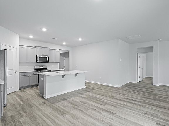 The Cali is Horton's most popular ranch-style home in the nation. The 1,774 square-foot, one-story floor plan, is the perfect home with 4 bedrooms, and two bathrooms. Upon entering the front of the home, you'll find 2 bedrooms with a shared full bathroom in between. The luxury vinyl plank flooring will take your breath away. The home features an open concept living space which includes a fantastic kitchen island, perfect to gather around.An additional bedroom, just off the kitchen, is the ideal space for guests or a home office. The back of the home features an owner's suite, including a full bathroom, and an oversized closet.An additional bedroom, just off the kitchen, is the ideal space for guests or a home office. The back of the home features an owner's suite, including a full bathroom, and an oversized closet. This beauty also includes 9-foot first floor ceilings, 36'' gray kitchen cabinets, quartz countertops, gas range, exterior vented hood, and a dishwasher, (all stainless-steel appliances). All new homes will include D.R. Horton's Home is Connected® package, an industry leading suite of smart home products that keeps homeowners connected with the people and place they value the most. This technology allows homeowners to monitor and control their home from the couch or across the globe. Products include touchscreen interface, video doorbell, front door light, z-wave t-stat, and keyless door lock. *Square footage dimensions are approximate. *The photos you see here are for illustration purposes only, interior and exterior features, options, colors and selections will differ. Please reach out to sales agent for options.