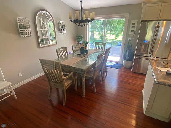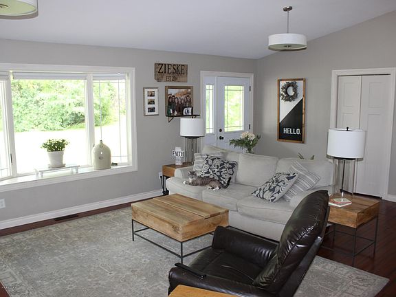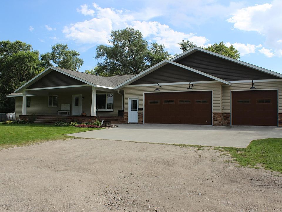 Check out this beautiful five-bedroom, three-bath rambler. Located on a large lot at the end of a dead-end road, the home is surrounded by private open space, It's almost like living in the country. Enjoy your morning coffee on the covered front porch. The exterior also features a large above-ground pool, basketball court, & a poured concrete patio area. The main floor of the house features 3 bedrooms & 2 bathrooms including a spacious primary bedroom with a walk-in closet & an ensuite bathroom. The kitchen, dining area, and living room feature an open-concept design with vaulted ceilings. The lower level features a large family room area with a gorgeous stacked stone & reclaimed barn wood fireplace with built-in seating. The basement also has 2 more large bedrooms & a large dual sink full bathroom. The lower level also has in-floor radiant heat. The large 3-stall garage has all the space you need for whatever hobby you want. The garage features radiant floor heat, floor drains, a hot & cold water utility sink, electric vehicle charging outlet, & it's wired for cable & internet! Make an appointment to look at this house today. You won't be disappointed!