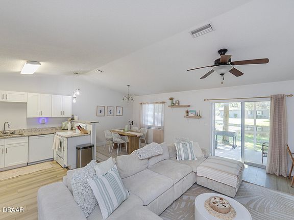 This charming 2 bed, 2 bath half duplex offers convenience and comfort just minutes from everything you need. Enjoy an open floor plan with vaulted ceilings, a modern kitchen boasting granite countertops, wood cabinets, and updated bathrooms. Step outside to unwind on the covered patio overlooking the pond. Lawn care and pest control are included for worry-free living. Close to Dunlawton shopping, medical facilities, and a variety of dining options. Just a short drive to the famous Daytona Beach! Background and credit checks will be conducted. Easy to see! Owner is a licensed real estate broker.