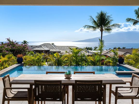 Nestled within the prestigious gated Lanikeha community on Maui, 804 Anapuni Loop presents an exceptional long-term rental opportunity, offering panoramic vistas of Moloka'i and Lana'i. Constructed in 2023, this contemporary 6,300-square-foot residence seamlessly integrates modern design with island sophistication, highlighted by a 4,260-square-foot primary structure.