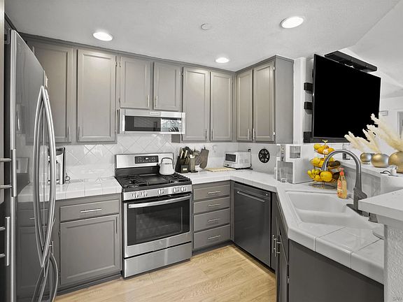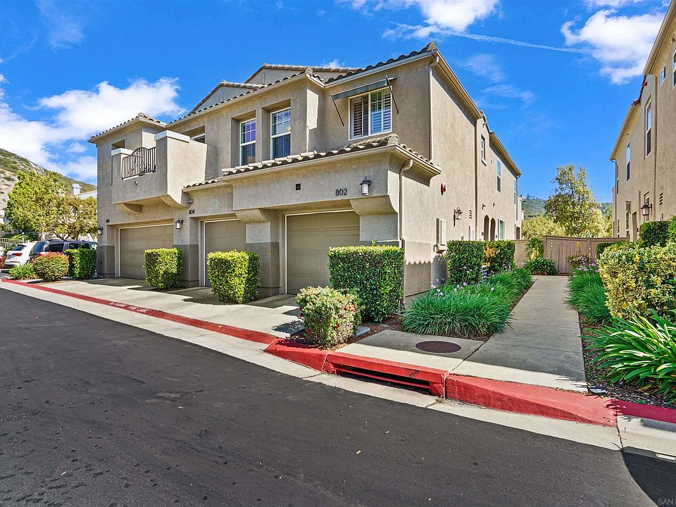 VA and FHA approved! Updated end-unit condo in the sought-after gated Campana at Rancho Coronado. This private home offers all living space on the second story, with entry on the first floor for added privacy. It features upgraded appliances, a new washer and dryer, stylish bathroom finishes, new light fixtures, laminate floors, a stacked stone fireplace, a whole-house water softener and filtration system, and new blinds. Just minutes from San Elijo Hills, Cal State San Marcos, Kaiser Hospital, dining, hiking, lakes, and more. Relax on your private balcony with ocean views, beautiful sunsets, and summer firework shows. Enjoy comfort, convenience, and modern upgrades, all within this peaceful gated community