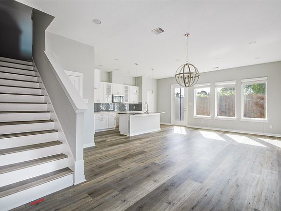 Inviting 3-bed, 2.5-bath home in a gated community, set on a desirable corner lot with only one neighbor on one side. The modern, open-concept layout features a first-floor kitchen with a farmhouse sink, quartz island, shaker cabinets, and stylish hardware. Upstairs, the primary suite includes an expansive walk-in closet and a beautifully designed bath with a semi-frameless glass shower and a relaxing soaker tub—perfect for winding down. A versatile playroom and a convenient utility room complete the second floor. Enjoy contemporary living with quick access to Downtown, the Medical Center, shopping, dining, and major freeways.