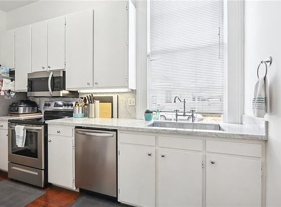 A true Uptown gem to call home. This East Riverside corner cottage, nestled alongside Magazine Street and the Mardi Gras parade-route is part of a triplex. This unit lives like a townhouse with a flexible flow of living space. The soaring 13-foot ceilings, and hardwood floors throughout - give this SUNLIT property a regal feel with its abundance of natural light! Located just off Magazine Street the location is considered "prime". Surrounded by outstanding restaurants, coffee shops, boutique shopping, and 3+ grocery stores - you never have to leave the comfort of your neighborhood. Wisner Park with its dog park, basketball court, park, coffee shop & softball field is a great neighbor, as are Audubon Park & the local Universities. The galley kitchen is bright with plenty of storage, stainless steel appliances, marble accents, and white cabinets. An in-unit washer & dryer adds to the bells and whistles. This unit with its original wood floors, tall ceilings and location make this rental the epitome of a New Orleans charmer. Plus it's pet-friendly!
