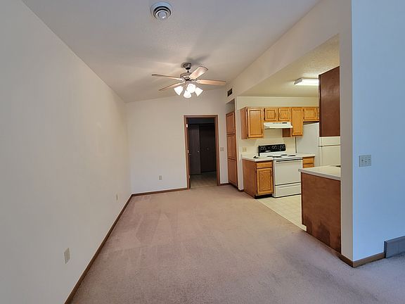 Very nice and highly desired 2 bedroom, 1.5 bath unit located on the north side of Menomonie. This unit includes central air conditioning, a dishwasher, and washer/dryer hookups in the unit. Enjoy vaulted ceilings, a large living room, and a wonderful floor plan overall. It also includes an attached 1-car garage. Rent includes lawn care, snow removal and garbage. Located close to North Menomonie amenities! Available September 29th, 2025.