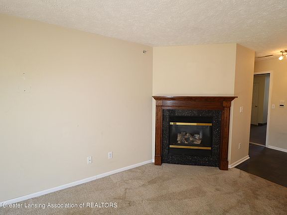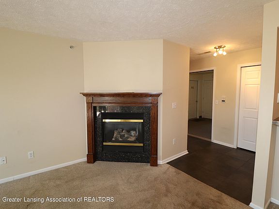 WOW!! 3 bedroom 2 full bath Condo END unit Main Floor, Rear Building, Rear unit! What a View and Privacy!! Nice Tile Entry and Kitchen with Newer Appliances. Beautiful Gas log fireplace with new Oak and tile surround 1 Car Garage included with unit.