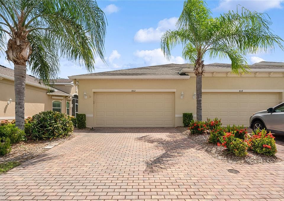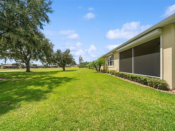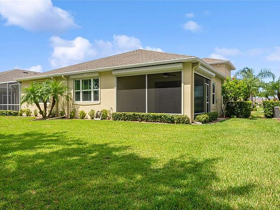 Discover luxury resort-style living in the highly desirable gated Verona community of Sun City Center. This popular Buttonwood villa, built in 2016, blends elegant finishes and thoughtful upgrades across 1,568 sq?ft of single-level living space on a beautifully landscaped lot. Step inside to find a bright, open floor plan with tray ceilings, crown molding, and built-in shelving, complemented by plantation shutters throughout. The gourmet kitchen delights with granite countertops, center island with breakfast bar, ample cabinet storage, and upgraded lighting—perfect for both casual meals and entertaining. Host gatherings effortlessly with a split-bedroom layout offering privacy for guests. The spacious interior includes ceiling fans, walk-in closets, and an inside laundry room with full-size washer and dryer. Relax in the screened rear lanai overlooking serene golf-course and water views—enjoy breezy afternoons surrounded by a pond and majestic oak trees. The lanai also features electronic hurricane shudders that can double as a sun shield for extra piece of mind. Located just minutes from Tampa Bay, Sarasota, and St. Pete, this is the ideal 55+ lifestyle of leisure, convenience, and community. All this in an elegant, move-in ready setting—schedule your private showing today! Relax in the screened rear lanai overlooking serene golf-course and water views—enjoy breezy afternoons surrounded by a pond and majestic oak trees.