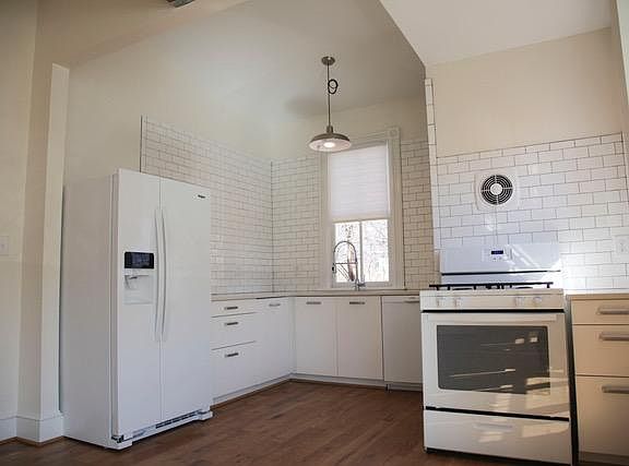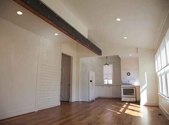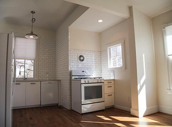 We have an apartment available in a lovingly renovated home in the Cleveland Holloway National Register Historic District. This house has been meticulously restored following the Secretary of the Interior's standards as well as the Durham Historic Preservation Commission's requirements. This ground floor apartment has a fenced in private yard. It features a spacious open concept kitchen/living room with lots of windows and historic details. Kitchen has brand new everything, with granite countertops, gas range, dishwasher, and ice/water in fridge. Large bathroom is all-new with a ceramic tile shower and double vanity. Huge bedroom has giant closet and restored fireplace facade. This apartment has tons of extra storage, soaring ceilings with canned lighting, ceiling fans, and a washer/dryer. Home is within sight of downtown Durham, as well as convenient to major highways. On-street parking. pets OK with monthly Pet Fee. Available June 15th for a one-year lease. $1500 per month.
