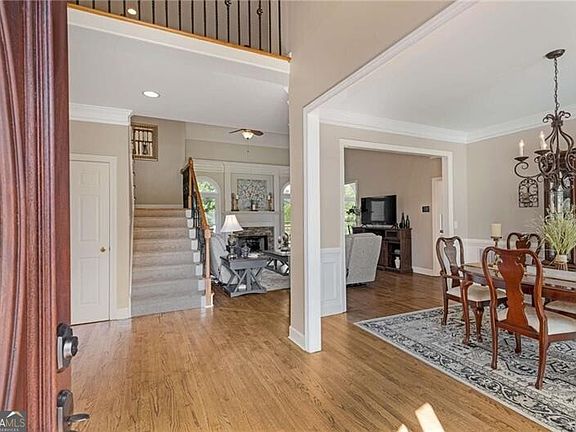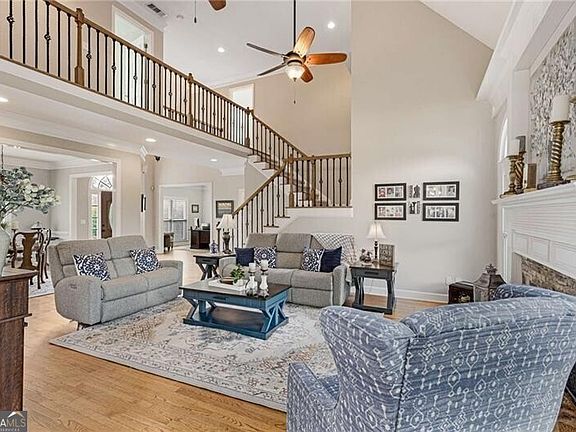 The ONE you've been waiting for in sought after Bradshaw Farm! Discover luxury living in this gorgeously renovated home including a professionally designed chef's kitchen with white custom soft close cabinetry, custom vent hood, pot-filler, large island, stacked cabinets w/lighted glass fronts, and beautiful quartz countertops! Designed with comfort and style in mind, this home offers 6 bedrooms, 4.5 baths, with the primary suite conveniently located on the main level. Step into the luxurious primary en-suite with vaulted ceiling featuring elegant beams, new cabinets, quartz counters, custom tile, seamless glass shower w/dual shower heads, heated floors and free-standing tub. Four spacious bedrooms upstairs, one with its own attached bath, all feature large closets! The fully finished basement adds even more living space, featuring a spacious bar and entertainment tv area, flexible gym or 6th bedroom and full bath, perfect for movie nights, game days, or hosting guests. Tons of storage! Step outside to enjoy a large screened patio or the new deck overlooking the beautiful, large landscaped flat yard, perfect for entertaining and room for a pool! This move-in ready home features a new roof 2025, Newer HVAC, newly refinished hardwoods, new carpet, new paint, new vinyl windows & more! This home has it all and has easy proximity to downtown Woodstock, Alpharetta, Milton, Roswell and Canton. You'll find shopping, dining and highly rated schools right around the corner. Enjoy an abundance of amenities in this golf, swim, tennis, neighborhood. Hurry to see!