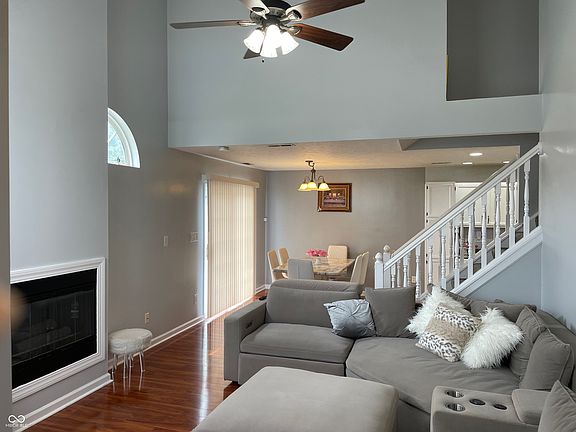 Fabulous Condo in a Great Neighborhood w/Convenient Access to 10th St + Rockville Rd + I-465. Very Well Maintained + Lots of Updates! Ceramic Tile Foyer opens to the Great Room w/16' Vaulted Ceiling + Updated "Hardwood look" Laminate Flooring + Gas Log Fireplace + Lots of Windows + Open Rail Staircase to Two Large Upstairs BR's w/Walk-in Closets! Dining Room/Brkfst Rm w/ Updated "Hardwood look" Laminate Flooring + Doors to Patio. Large Ceramic Tiled Kitchen w/Lots of Extra Cabinets + Great Lighting + Updated Stainless Steel Refrigerator + Updated Stainless Steel Electric Range/Oven + Dishwasher + Garbage Disposal + Portable Microwave. Laundry Area Opens to the Upper Hall and Includes a Washer & Dryer. Main Floor 1/2 Bath + 2 Car Garage w/Garage Door Opener + Parking for Two more cars in front of the garage. Major Updates...Roof (2021)...Air Conditioner (2021)...Gas Water Heater (2019)...Newer Laminate Flooring + Carpeting + Interior Painting (All in the past 5 years). The HOA fee also includes Water + Sewer + Trash + Irrigation System + Lawn.