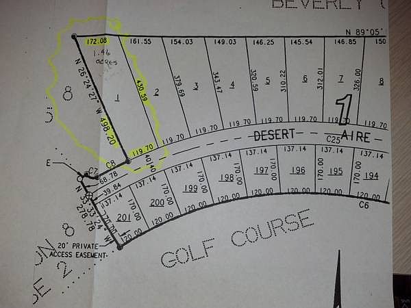 Desert Aire lot, approximately 1-1/2 acres, water, power and cable up to lot, ready to build.