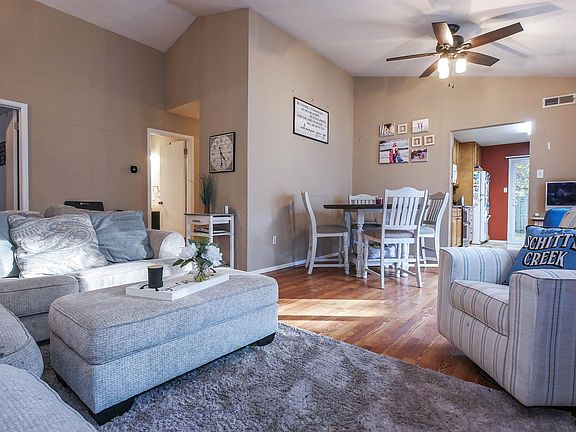 Welcome to your dream ranch-style retreat in Historic Smithville! This beautifully maintained 3-bedroom, 2-bath is the perfect blend of comfort and functionality. Nestled in the serene, tree-lined Smithville neighborhood, this property is a rare gem in today's real estate market. As you step through the front door, you are greeted by a spacious and inviting living room with laminate flooring throughout. The open concept design creates an airy atmosphere that's perfect for entertaining, with ample space for a sitting area or a formal dining setup. The well-appointed kitchen is a chef's delight. It boasts a stainless steel dishwasher and electric stove / oven / air fryer, and beautiful granite counters with high stools for casual dining. Expansive counter space and plenty of storage pleases even the most discerning chef. The master bedroom is a tranquil haven with an en-suite bathroom and large walk in closet. Two more bedrooms are perfect for family members, guests, or can be easily converted into a home office or hobby room. Step out onto the back patio and discover a spacious, fenced backyard that's perfect for outdoor activities, gardening, or simply enjoying the fresh air. It's a great canvas for your landscaping ideas. The attached garage provides secure parking and additional storage space. The driveway offers plenty of room for 2 vehicles. Located in a peaceful neighborhood, you're just moments away from the Smithville Shoppes, schools, parks and convenience shopping. Easy access to major roadways. Smithville Association amenities include two pools, a gym, community center, basketball and tennis courts, playgrounds and endless hiking trails! HOA fee of $69 a month also includes trash and recycling.