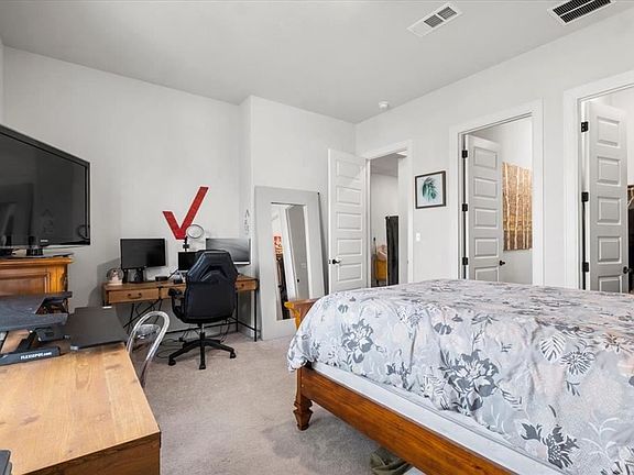 Welcome to your dream modern farmhouse, constructed in 2020 and nestled among the natural beauty of Dripping Springs' greenbelt in the desirable Headwaters community. Indulge in the best of Texas hill country living, with an array of mouthwatering dining options, unique shops, and renowned wineries nearby. Greet the day from the cozy covered front porch, an idyllic spot for a porch swing or enjoying your morning coffee. A contemporary glass door ushers you into the pristine 2,030 sq ft interior, showcasing 4 spacious bedrooms, 1 spa-like bathroom, 2 Full bathroom, 1 social 1/2 and, open floor plan adorned with luxurious vinyl plank flooring and designer fixtures. The state-of-the-art kitchen is an entertainer's dream, complete with an oversized center island, a modern wraparound breakfast bar, one-tone cabinetry, elegant quartz countertops, under-cabinet illumination, and a suite of high-end stainless steel appliances, including a gas cooktop with a sleek range hood.