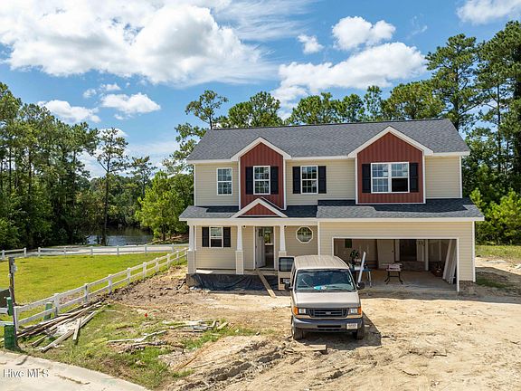 Welcome to this stunning brand-new construction that blends timeless design with modern comfort, built on a lot adjacent to the New River. This two-story home offers three bedrooms, two and a half baths, and a thoughtful floor plan that maximizes both style and function. The main level is anchored by a spacious great room, seamlessly connecting to the dining area and a bright, open kitchen complete with a pantry and plenty of counter space. The two-car garage provides convenience and storage, while the welcoming front porch adds extra curb appeal. Upstairs, the private owner's suite is a true retreat with a large walk-in closet and a luxurious bath featuring dual vanities and a soaking tub. Two additional bedrooms share a full bath. The laundry room is also conveniently located upstairs for easy access. But this is more than just a beautiful home—it's a lifestyle. Set within a waterfront neighborhood, you'll have access to a community boat dock and boat ramp that makes it easy to spend weekends fishing, boating, or cruising along the water. The lot itself is almost 1.5 acres and offers a peaceful setting, tucked away from the hustle yet still just minutes from shopping, dining, schools, and the military base all while living riverfront. Whether you're looking for a place to entertain, raise children, or simply enjoy the quiet beauty of coastal living, this home delivers it all. With brand-new construction, spacious design, and exclusive access to the water, this home is ready to become your forever retreat. Discover this exquisite brand-new construction, seamlessly blending timeless design with modern comfort. Located on a nearly 1.5-acre lot bordering the New River, this two-story home offers three bedrooms, two and a half baths, and a thoughtfully designed floor plan that maximizes both style and function. Seller is offering a $3,500 buyer credit to use as they choose!