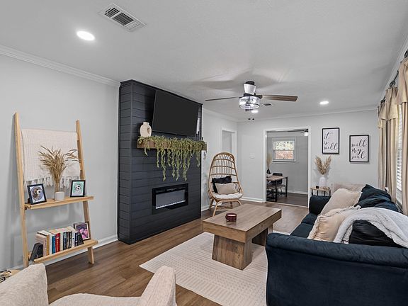 Modern fireplaceLarge privacy-fenced backyardUpdated kitchenInviting layoutStainless steel appliancesSpacious dining roomTiled walk-in shower