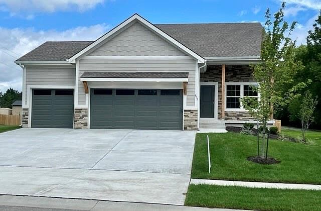 Ready Now!! Beautiful new 1.5 Story home on quiet Cut-de-sac lot. This home has a lot to offer with a great, open floor plan, nice size Master Suite on main level with walk-in Shower, walk in closet , the Great Room soaring ceilings open to the Kitchen with a huge walk-in Pantry, quartz counters, granite sink, lots of cabinets and space to move around! Upstairs is a great place for the kids or visiting family with its own Family Room & 2 additional great sized Bedrooms. Check out the amazing drop zone and laundry room , right off the wide 3 car garage! Beautiful flooring through out, with upgraded luxury vinyl planks, upgraded stair carpet , beautiful tile choices in laundry , and bathrooms ! You’ll fall in love while visiting this home! All this and walking distance from Grocery Shopping, Convenience Stores, or just short trips to VA , St Mary’s, Ft Leavenworth, Kansas City Airport and everything KC!