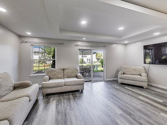 Welcome home to this beautifully updated two-story townhome with an attached garage in a desirable Addison location. The bright and open main level features new flooring, recessed lighting, and a spacious living and dining area with direct access to a private patio and expansive green space. The remodeled kitchen is a standout, offering granite countertops, stainless steel appliances, freshly painted cabinetry, and a breakfast bar with seating that flows into the dining and living areas. Upstairs you'll find two generously sized bedrooms and a convenient second-floor laundry room. The primary suite includes a walk-in closet and semi-ensuite bath, while the second bedroom works perfectly as a guest room, home office, or flex space. Thoughtful updates throughout include a remodeled kitchen and bath, newer toilets and fixtures, and a newer water heater. Enjoy outdoor living with a private patio overlooking beautifully landscaped common grounds, ideal for entertaining or relaxing. Conveniently located near major highways, shopping, dining, and golf courses, this home blends comfort, updates, and accessibility. Low taxes and assessments add even more value, making it truly move-in ready.