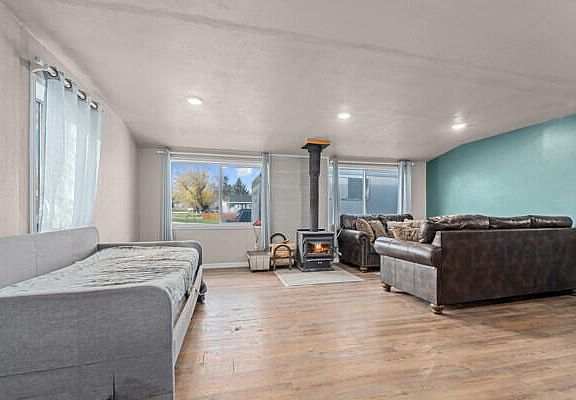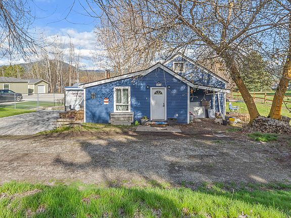 Charming 2 BR 1 BA one level home in a nice neighborhood. Large open floor plan, with all appliances included. New vented roof put on in 2020 is equipped with de-icing strands on north side. Doggie door on back of house leads to a nice fenced in area. This sale includes a mobile unit which is currently used for dog grooming and could be easily converted to other business opportunities. This home sits on 3 city lots with mature apple and plum trees and extra out buildings (dog kennel, shed, garage with above ground root celler). There is a fully equipped off-grid cabin in back. Not included in the sq. footage is an upstairs bonus space running the length of the house. Located within 6 blocks of downtown with a country feel.