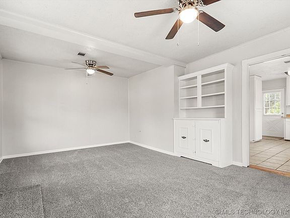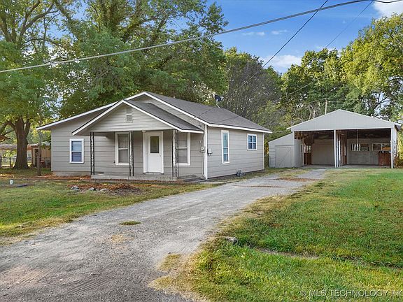 Adorable, cozy home that has been updated and is Move in Ready! New carpet, interior and exterior paint and newer roof. Kitchen complete with updated appliances, pantry storage and refrigerator stays! Large oversized lot that is fully fenced. Nestled on quiet street but close to town, schools, highways and lake Ft. Gibson. Huge multi-car carport with storage and enclosed Shop with electric. No HOA, home qualifies for USDA $0 down payment loan.