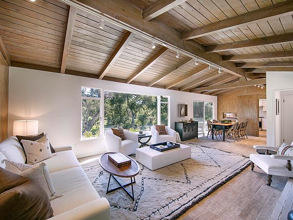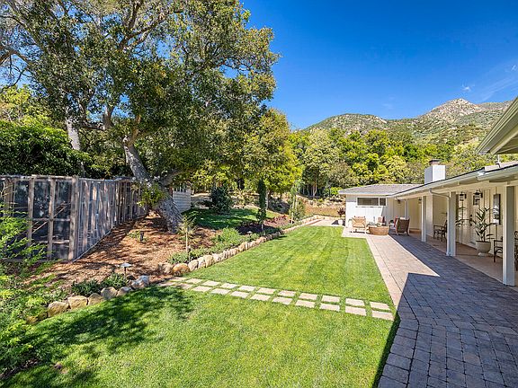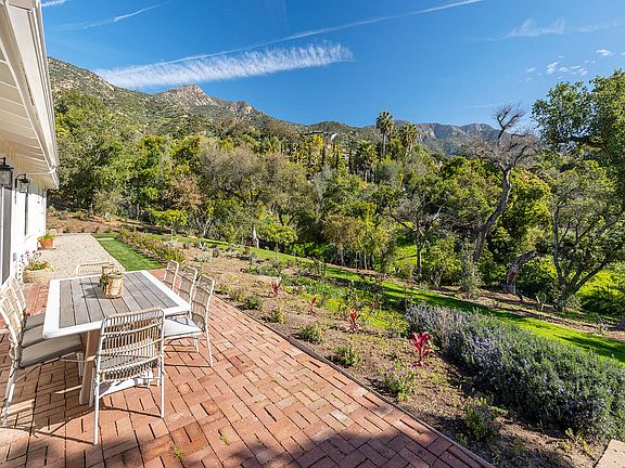 Nestled among a grand oak canopy and stunning estates, spectacular views of the Montecito Foothills and Romero Saddle abound from this recently remodeled 1959 mid-century ranch house set on 1 acre. The approx. 2,014 sf home offers 4 beds, two baths, and charming aesthetics like vaulted plank ceilings, rich wood paneling, and a cheerful red brick raised hearth fireplace. An ideal art studio/office possesses plentiful storage and walls of glass that harness exceptional light and boundless views. Sample the bounty of flavor from your backyard fruit trees and fresh eggs from the chicken coop. This property is your ultimate garden hideaway in the MUS school district.