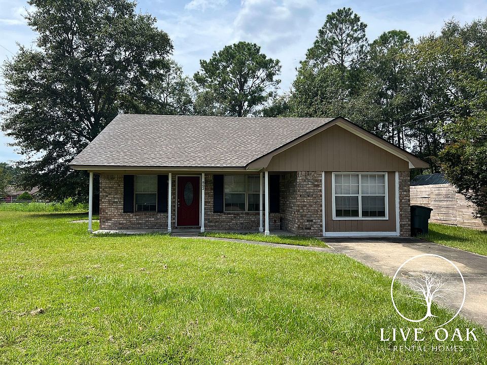 Charming single-story brick home situated on a large lot, offering 4 bedrooms and 2 full baths across 1,087 sq ft of comfortable living space. Perfectly located right between Gate 8 and Gate 1 of Fort Stewart, this property provides a quick and easy commute on post. Enjoy relaxing mornings on the covered front porch before stepping inside to a thoughtfully designed interior. The large eat-in kitchen features a vaulted ceiling, stainless steel appliances, a pantry, and a functional layout ideal for everyday living. The home is completely carpet-free, showcasing durable LVP and tile flooring throughout. The oversized 4th bedroom offers flexibility as a bonus room, office, or playroom, while ceiling fans in all bedrooms add year-round comfort. Conveniently located close to shopping, dining, and grocery options, this home is a fantastic opportunity for anyone seeking both comfort and convenience. Pet friendly!* (*One time, non-refundable $250 pet fee may apply, per pet, 2 pets limit). **1-year lease required to receive move-in special.