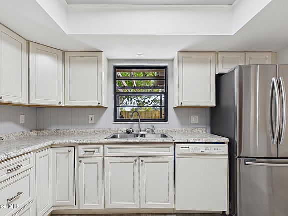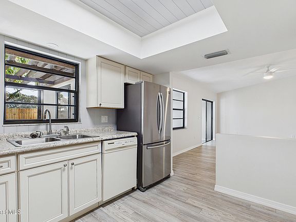 Completely Remodeled Like New Half Duplex - 2 Bedroom with 2 Gorgeous New FULL Baths. All New Flooring Throughout - Luxury Vinyl, Fresh Light & Bright Painted Inside and Exterior, Newly Stained Concrete on Back Patio and In Garage. Brand New Tankless Water Heater gives your Ever Ready Instant Hot Water Throughout the Home, Refrigerator, Dishwasher, Microwave Stove, Washer & Dryer all Convey with the Property. This adorable home with a Garage has a lushly landscaped yard with Mango Trees, and shrubbed entrance to front door, Entire yard is fenced with lots of room for child play and dogs to run, A Beautiful Recently New Shed with Locking Door is in Back Yard and houses all the Aluminum Shutters that Cover All the Windows which helps with your Insurance, Roof was New in 2019. This Home is a Must See Conveniently located off Murrell which runs between I-95 and US-1 easy commute North to Space Center, East to Space Force Base or South to Palm Bay Corporations. A MUST SEE! NO HOA!!! All in sweet neighborhood, sweet neighbors but NO CONDO Boss Kings to pay monthly money to. This LIL Gem is Turn Key and at this Amazing Price it is going to go fast. Make it yours - Come and Get The Keys... Thats All You Need!