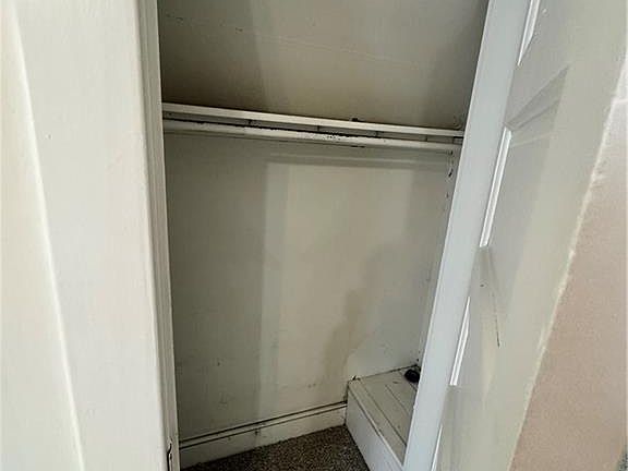 4 bedroom 1.5 bath home. Has newer paint and flooring. Home has bedroom on main level and 3 bedroom upstairs. Home does have a basement. Home also has detached 2 car garage.
