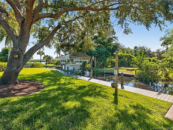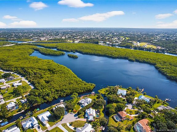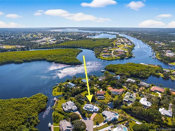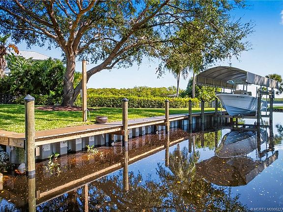 Discover the ultimаtе Flοrida lifеstуle in this stunning watеrfront hοme offering 250 feet of canal frontage just off the St. Lucie River with ocean access. Set on over a half acre on a quiet cul-de-sac, this 2 story home features a new metal roof (2023), complete impact glass, and a gorgeous infinity-edge pool with spa beside a tropical tiki hut. Enjoy a new seawall and composite dock (2024) with boat lift—perfect for effortless days on the water, sunset cruises, or weekend adventures. The wrap-around porch and expansive back patio create ideal spaces to relax and take in the water views. Inside, you’ll find a stunning updated kitchen, renovated upstairs bath, loft space, plantation shutters, crown molding, and wood-look tile floors. Lush landscaping surrounds the home, creating a private sanctuary of elegance and resort style living. Close to shopping, dining, golf, and beautiful beaches. Easy access to FL Turnpike.