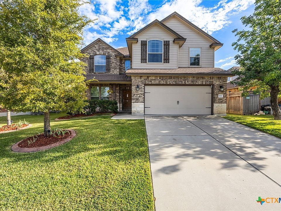 Welcome home to this beautiful two-story gem in the highly sought-after Tuscany Meadows neighborhood of Harker Heights! This 4-bedroom, 2.5-bathroom home offers space, comfort, and charm at every turn. Step inside to a two-story foyer leading to a flexible front room, perfect for an office, playroom, or formal dining / sitting area. The spacious living room features vaulted ceilings, gorgeous large windows and a cozy wood-burning fireplace that flows seamlessly into the kitchen and dining area, creating the perfect setting for gatherings and everyday living.