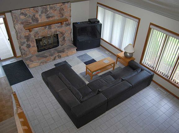 Unique Contemporary with Loft. Features 2 Story Great Room with stone fireplace with soaring cathedral ceilings and sliding doors leading to new concrete patio,kitchen with granite countertops and stainless steel appliances,atrium eating area,updated bathrooms,dining room currently used as a family room,massive full unfinished basement ready for your finishing touches,Pella windows,newer furnace,a/c and roof.