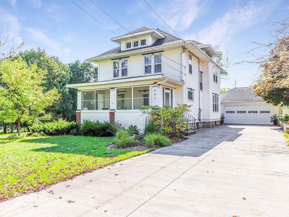 Step into the allure of yesteryears blended seamlessly with contemporary living in this 4 BR 1.5 BA two-story home. Boasting original woodwork, a captivating staircase, and an array of delightful features, this two-story gem exudes charm and character at every turn. As you enter, be greeted by the warmth of the hardwood floors leading you to a large family room adorned with original wood details, natural light, and a cozy gas fireplace flanked with bookcases, perfect for gathering with loved ones on chilly evenings. For more formal occasions, the elegant dining room provides an ideal setting for hosting gatherings and is accented by the chair rail. The galley-style kitchen offers all appliances, an abundance of cabinet space and countertop, built-in hutch that effortlessly flows into the dinette area, which opens to the back deck. A half bath and small den for office area are tucked away for privacy. Ascend the beautiful staircase to discover four generously sized bedrooms, each exuding its unique charm and character.,The primary bedroom offers a private balcony, providing a tranquil retreat to unwind and soak in the serene surroundings. With one full bath conveniently located upstairs, this home ensures comfort and convenience for the entire family. Pull-down steps lead to a walk-up attic, with a cedar closet, ideal for extra storage. Outside, enjoy the pleasures of outdoor living with a large deck and patio, perfect for al fresco dining, entertaining guests, or simply basking in the sunshine. The two-car detached garage provides ample space for parking and storage, catering to the practical needs of modern living while preserving the timeless appeal of the property. Conveniently situated close to schools, shopping, and downtown, this home offers the best of both worlds - tranquility and accessibility. Whether it's a stroll to nearby parks, a quick trip to the grocery store, or exploring the vibrant offerings of downtown, you will find everything you need just moments away. Don't miss the opportunity to make this timeless gem your own and embrace the allure of classic elegance in everyday living.