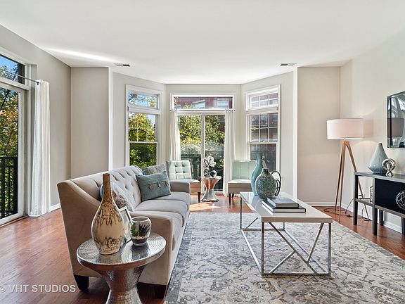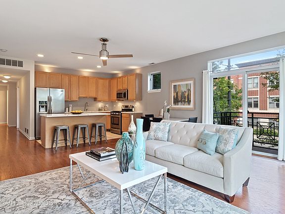 EXTRA WIDE OVERSIZED CORNER 2BED/ 2BATH CONDO IN THE HEART OF UNIVERSITY VILLAGE! Completely updated with luxury finishes throughout: hardwood floors, BRAND NEW designer paint, TWO balconies with NEW decking, and N,S,E exposures that overlook lush landscaping and treetops! OVERSIZED living space flooded with sunlight has sliding glass door that opens to private balcony, bay window with wall of windows, room for seating arrangement and dining table. OPEN KITCHEN with all stainless appliances, NEW QUARTZ counters, and HUGE island! OVERSIZED master suite easily accommodates king sized bed, has tons of closet space with custom built-ins, and a PRIVATE BALCONY. REMODELED master bath has stylish gray vanity, double sinks, rain shower head, and full tile surround! Second bed accommodates queen bed, has tons of closet space with custom built-ins, and sliding door that opens to outside! Located steps from dining, entertainment, parks, public transit, and UIC. PARKING INCLUDED!