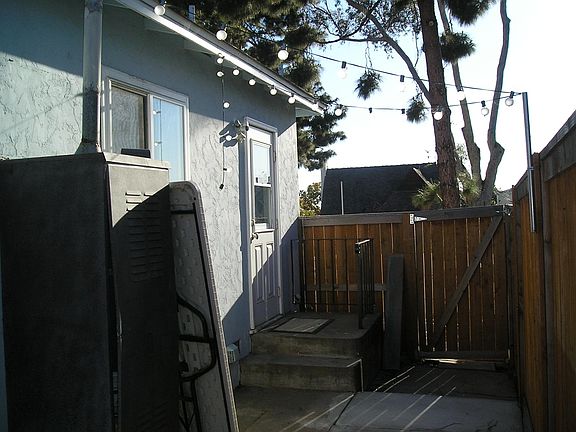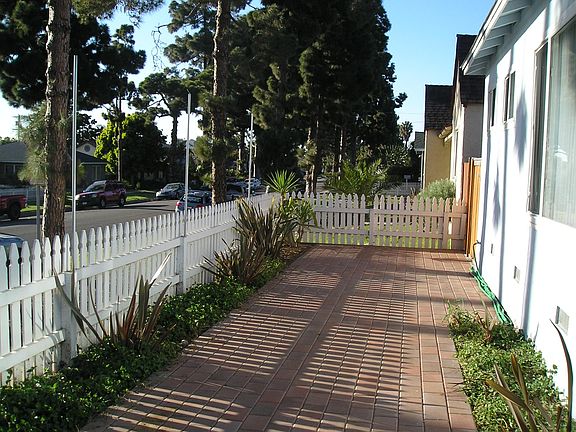 This adorable corner lot duplex is located just blocks to the beach. Updated kitchen cabinets, counter tops, stainless steel appliances, refinished hardwood floors. Laundry room with stack washer/dryer. Light and bright interior. Private fenced back patio plus additional patio area and lawn in front and side yard. Street parking only. No A/C.