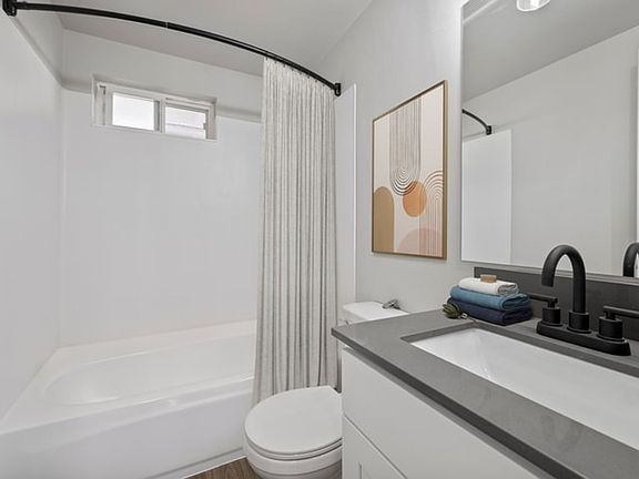 - Renovated Bathroom: A fully renovated bathroom featuring a full bathtub and a spacious vanity.