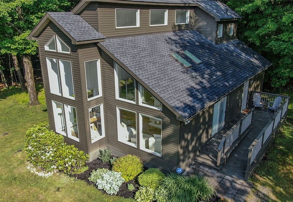 Bright and beautifully remodeled country retreat on 4 acres in Rushford! Located just 2 miles from Rushford Lake, this contemporary, 2-bed, 2-bath home offers 1,500+ sq. ft. of living space. The vaulted cathedral ceilings and floor to ceiling windows and skylights allow for lots of sunlight throughout the home. Outside, enjoy the deck that overlooks the yard, surrounded by woods and in the winter, enjoy the snowmobile trail across the street. The main level of the home includes a meticulously updated, spacious kitchen with new cabinets, quartz countertops and new kitchen appliances (2017), and a spacious primary bedroom suite and first floor laundry. On the secondary level of the home, is the second bedroom and a loft that is currently being used as a third bedroom. Additional features include new on-demand water heater (2016), new asphalt shingle roof (2020) and front wood deck with ADA entry (2016), freshly painted exterior (2022) and new hardwood floors. With all of these features and a two-room basement with accessible crawl space for storage-you will want to make this your home today! All offers are due on Tuesday, June 27th by noon.