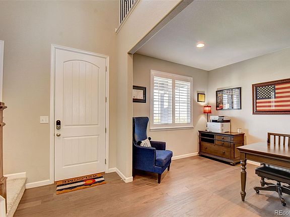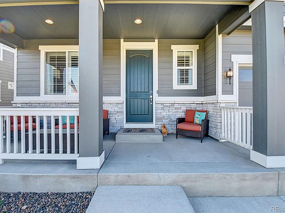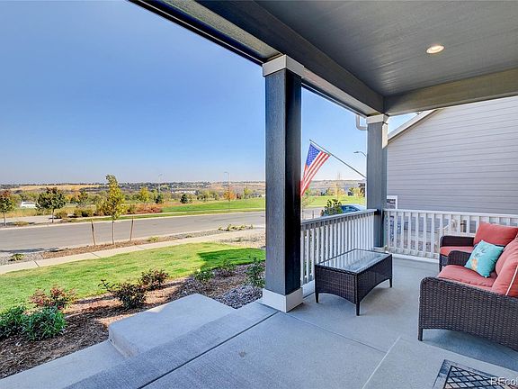 This beautiful nearly new home, just 1 year old, has a welcoming entry and large covered front porch with mountain views that leads into the great room and gourmet kitchen. The kitchen features stainless steel appliances including a double-oven, gas stove and refrigerator, pantry and large island that opens up to both the great room and the dining area with views of the backyard. Also on the main floor is an office/den, and a large family room with a beautiful gas fireplace. Upstairs, there is an open concept with a large loft area, two secondary bedrooms, upstairs laundry room, and a spacious master suite. The deluxe master bathroom contains a spacious, walk-in shower and luxurious bathtub, two sinks, and a walk-in closet. The fully-finished basement includes a bedroom, bathroom, recreation area, and ample storage. The backyard is perfect for those summer nights on the extended patio area and beautifully landscaped. All of this in the wonderful and well sought after Sterling Ranch Community. Why wait for new construction when you can have this amazing home with all the beautiful upgrades of plantation shutters, completed landscaping and finished basement.
