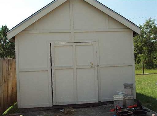 Corner lot with large storage building. Property features double garage,3 bedrooms, 2 updated baths, fireplace, tile and granite. Close to shopping, dining, entertainment, beach's and I-10
