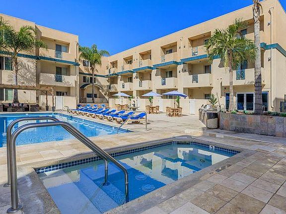 Beautiful studio, 1 bedroom, and 2 bedroom floor plans just blocks from the beach. All come with polished granite countertops, in-unit washer and dryer, dual glazed windows, refrigerator, gas range, microwave, security system, heat and air conditioning, and fireplace. Enjoy controlled access garage parking, controlled entry buildings, sparkling pool and spa, and a convenient fitness center.
