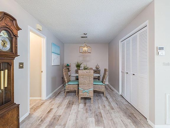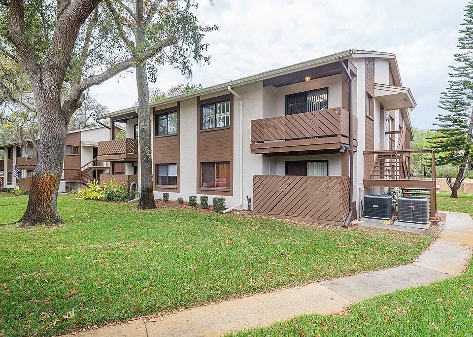 Welcome home to your charming Eagleswood Condo in the beautifully maintained neighborhood of Beacon Woods. This beautiful home has been tastefully UPDATED and decorated and is sure to please buyers seeking a low-maintenance, recreational lifestyle in a 55+ community. The homeowners have meticulously maintained their home and it is turn-key ready for the new owners. Enter the second-story home to discover beautiful luxury vinyl wood-look planks in the light filled living room, dining room, and hallway. Imagine creating your culinary masterpiece in the white and bright kitchen with luxurious GRANITE counter tops and STAINLESS STEEL appliances. Enjoy your meal inside, or perhaps opt to dine out on the open-air wood deck right off the kitchen. You will fall in love with the atmosphere that's been created on the screened-in back-porch. It's an outdoor sanctuary perfect for reading, relaxing, napping, or enjoying the company of your family and friends. The master suite offers a spacious walk-in closet, and the second bedroom is perfect for an office/den or hosting overnight guests. Eagleswood Condos offers plenty of fun with a community POOL, hot tub, spacious CLUBHOUSE, tennis courts, bocce ball, basketball court, and nearby public GOLF COURSE: Beacon Woods Golf Club. Every home has it's own assigned covered parking spot with storage unit attached. You will love the location with close proximity to shopping, restaurants, nature preserves, State Parks, Hudson Beach Park, and easy access to US 19! Fabulous!