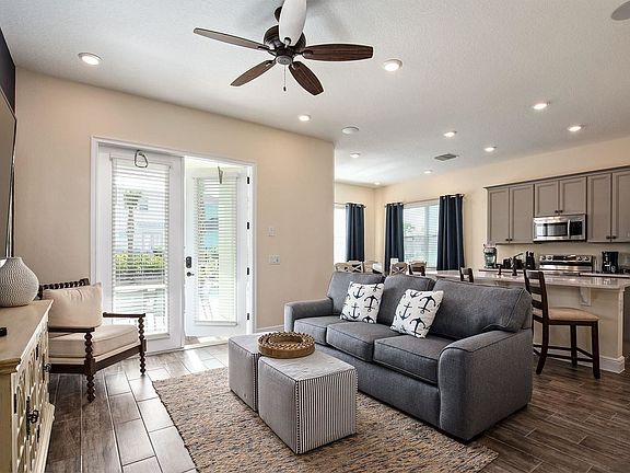 Adorable 2 story bungalow in the heart of paradise. **HOA IS PRE-PAID THROUGH AUGUST 2022!!! And A 10 YEAR 210 BUILDERS STRUCTURAL WARRANTY IS FULLY TRANSFERABLE!!**. Covered patio leads to the front door accessing the living area. Just beyond is the dinette and the spacious kitchen. Off the side of the kitchen is a half bath with access to the rear patio. Master suite boasts a walk-in closet and bathroom ensuite with dual sinks, and shower tub combo. 2 additional bedrooms upstairs each offer private bathrooms as well with shower/tub combo. Additional bedroom downstairs offers access to the rear patio as well. Head out to the fenced in, courtyard style backyard with **COVERED REAR PATIO**, and **HEATED POOL WITH SPA**. This community is inside of the famous **MARGARITAVILLE**, an island-inspired escape offering high-end accommodations, world-class dining and entertainment, and the most relaxing facilities and amenities around. Located **just minutes from Walt Disney World Resort, Universal Orlando Resort , SeaWorld Orlando**, etc. This property can be used as a full-time residence, second home, or s**SHORT-TERM RENTAL PROPERTY***. This RESORT STYLE COMMUNITY features two large swimming pools, multiple restaurants and bars, fitness center, full-service spa, walking distance to all of the restaurants, bars, shops and entertainment that Sunset Walk has to offer! Furniture and Housewares Package for an ADDITIONAL $42k (NOT Included in List Price)