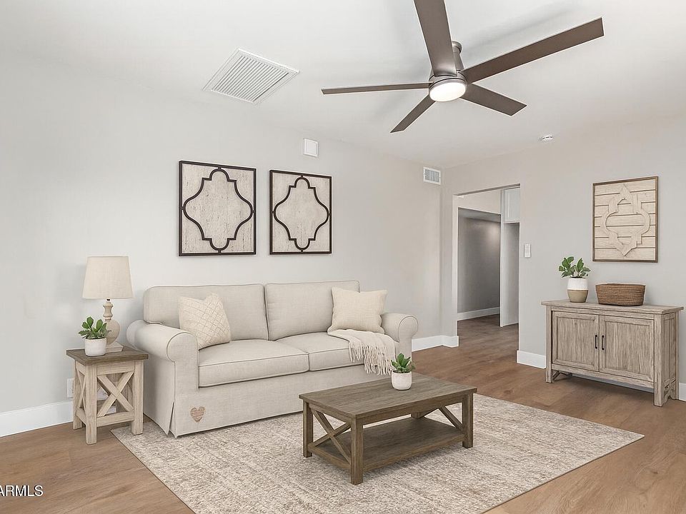 Welcome to this renovated single-story residence situated in Mesa, AZ! With its 2 beds, 1 bath, and a carport parking, this home promises comfort and convenience. Discover a freshly painted interior with wood-look flooring, ceiling fans, neutral palette, and lots of natural light. The inviting living & dining room sets the stage for a cozy living experience. Updated kitchen offers plenty of cabinet space, quartz counters, and stainless steel appliances. Each sizable bedroom provides a well-sized closet for easy organization. Let's not forget about the large bonus room that can be used as an entertainment area or office. Spacious backyard includes an open patio and plenty of room to add a pool or create your dream outdoor retreat. Hurry! Make it yours while it's available!