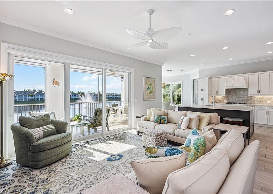 At the time of listing, this is the only available residence in the sought-after, prestigious community of Signature Club at Lely Resort in Naples. This popular, second-floor location lives like a home with over 2,700 air-conditioned-square-feet with four bedrooms (currently used as a den), three and one half baths with a two-car garage, private elevator and a screened-in rear terrace that overlooks the lake/fountain. The light and bright, great-room-style plan offers a coastal contemporary vibe and has been meticulously maintained by the owner. Featuring high ceilings, his/her master bedroom closets, plantation shutters throughout, impact glass with electric shutters on the lanai and more. The Signature Club is located in the heart of Lely and neighbors the amenity-rich Player’s Club & Spa. You can enjoy three resort-style pools, dining facilities, tiki bar, fitness center, tennis courts, bocce, pickleball and more. Two public and one optional private golf course. Lely has always been one of the most popular developments in Southwest Florida and offers a convenient location to downtown Naples or Marco Island.