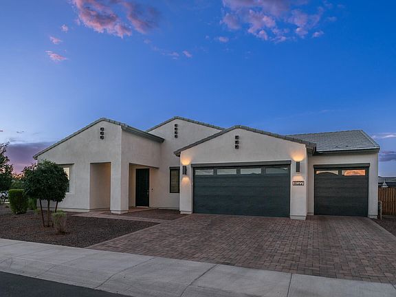 $15,000 backyard credit! WOW PAID OFF SOLAR! gated boutique community of all single-story homes, & a premium corner lot next to the park! The spacious Jerome model features 4 bedrooms, a versatile den, 3 full baths, & an oversized 5-car tandem garage + electric car charger! Inside, you'll love the airy open layout with 10-ft ceilings, 8-ft doors, & tons of natural light. The gourmet kitchen boasts 42'' saddle-stained cabinets, granite counters, stainless gas appliances, + a large island made for entertaining. Durable tile flooring throughout with NO carpet anywhere! & Location? just around the corner from the Cardinals Stadium, Westgate Entertainment District, Park West + the new & fun Desert Diamond Casino! ALL offering diverse dining, shopping, and entertainment all right nearby