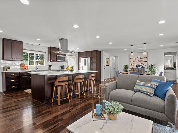Attention to detail & pride in ownership found in every corner, this is the Edmonds Rambler you have been waiting for. Enter into the Chef's kitchen complete w/ custom cabinets, pristine quartz counters, GE Café Appliances, & oversized island. The open floor-plan seamlessly transitions into the living room, dining area, & full guest bath. Each of the 3 bedrooms features custom lighting & abandoned closet space. Unwind in the comfort of the 5-piece primary bathroom complete w/ walk in shower & soaking tub. The detached finished flex space is ready for your creativity - additional living, home gym? Attached garage, sprawling backyard, RV parking & picturesque Edmonds location complete the picture. Welcome Home.