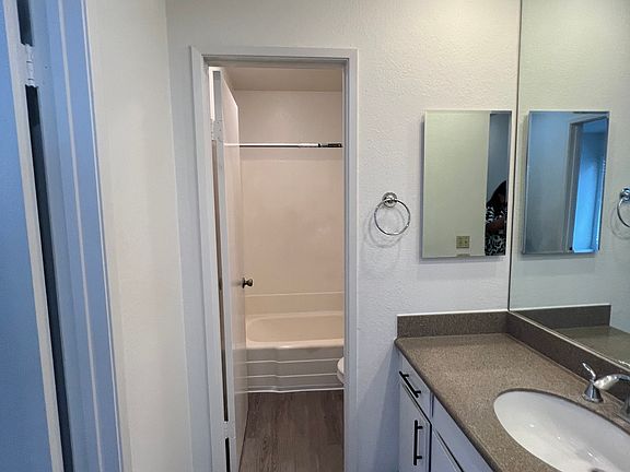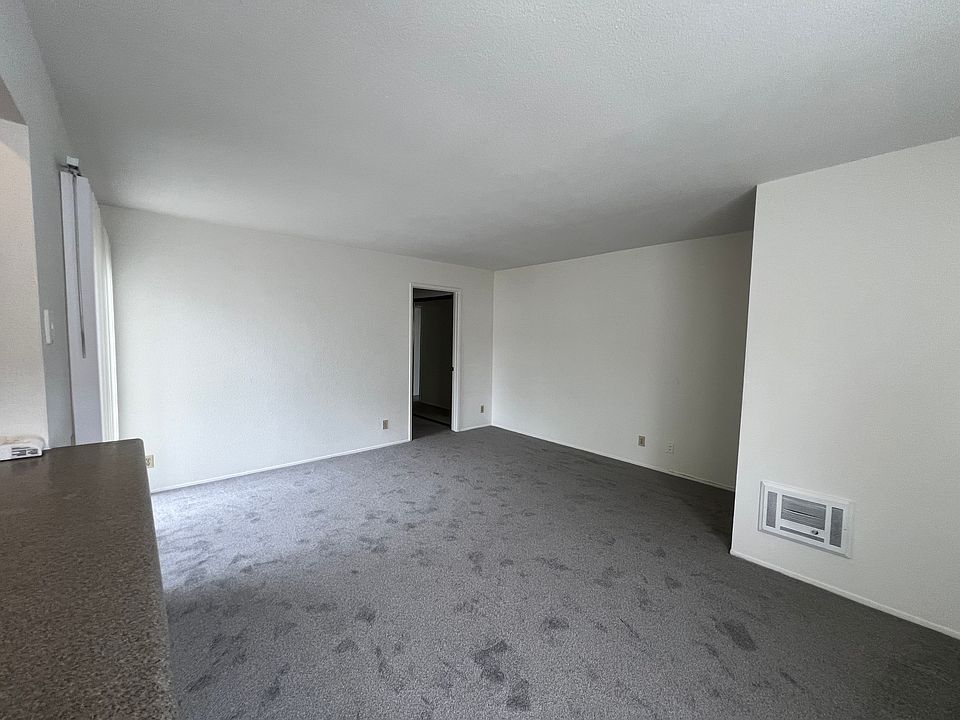 Upstairs Unit. 1 large bedroom with additional space for office and 1 bathroom. Unit has new paint, new carpet, new flooring in the bathroom, 2 sliding glass doors one in the living room and other in bedroom. 1 assigned parking space. Close to community laundry room. Community has swimming pool, hot tub, and BBQs.